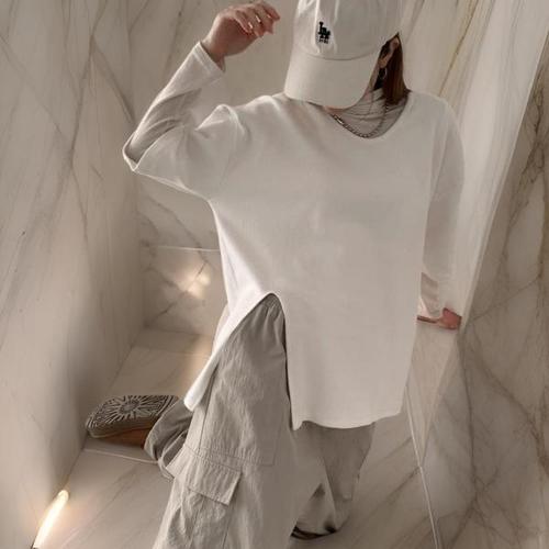 [옷자락]여자 슬릿 피치기모 기모반팔티 이너티 티셔츠