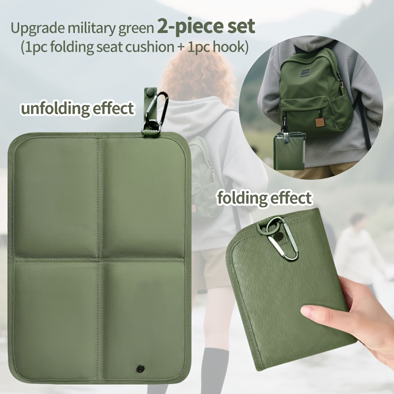 TEMU 2개 세트 (쿠션 + 후크) 두꺼운 휴대용 접이식 쿠션 세트 | 옥스포드 천 소재, 폼 패드 포함, 방습, 양면 사용 가능 | 캠핑, 피크닉, 하이킹, 해변, 경기장, 경량 경기장, 축제 콘서트 좌석에 적합