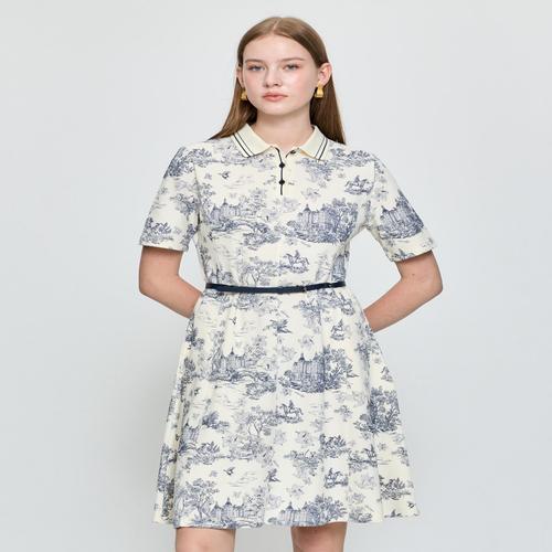 헤지스 여성 A라인 풀오픈 피케 반소매원피스 블루 (HSDR5BC33B3)