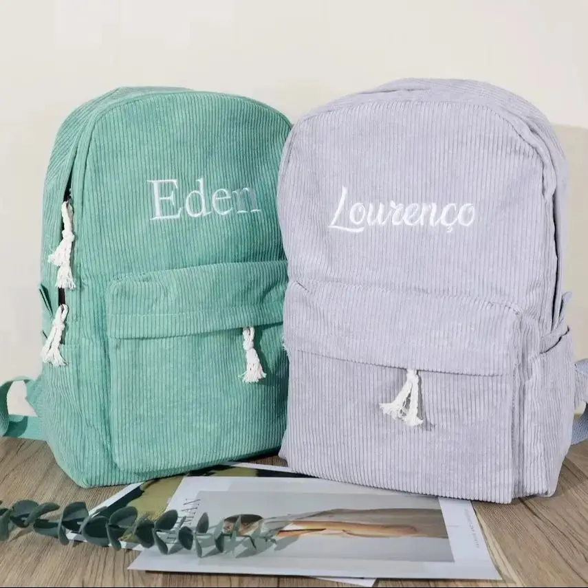 어린이 학교 가방 맞춤형 유아 배낭 수 놓은 이름 어린이 코듀로이 배낭 생일 선물 노트북 가방 학교로 돌아 가기