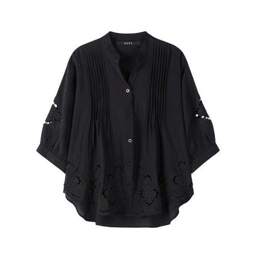 [GGPX]플라워 펀칭 트임넥 루즈핏 핀턱 블라우스 (GOBBA015D)