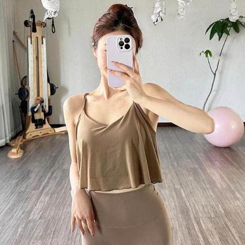 [에이치플러스몰]여자 필라테스 크롭 브라탑 요가복 상의 끈나시