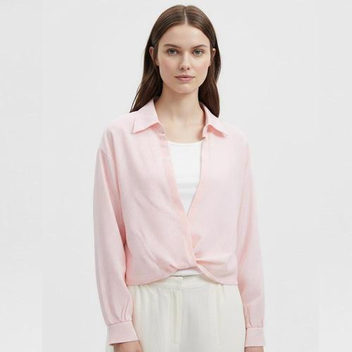 [다잇템]여자 단가라 크롭남방 SS 롱슬리브 핑크 셔츠