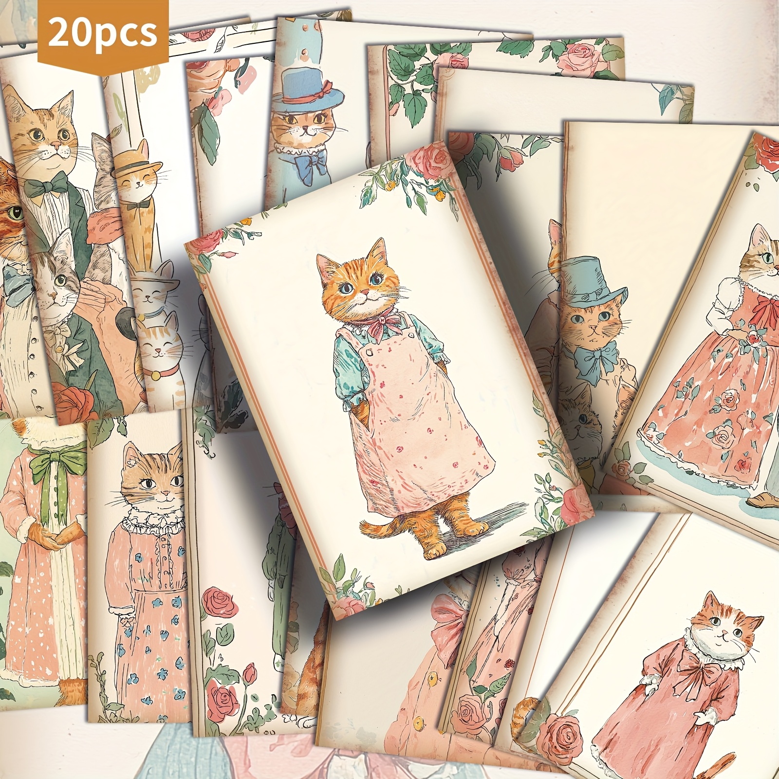 TEMU 20pcs 빈티지 시대 고양이 파스텔 포스트카드 - 4x6 인치 레트로 핀업 삽화, 스크랩북 및 크래프팅을 위한 클래식 만화 디자인, 귀여운 고양이 및 꽃 장식이 있는 수집용 장식 카드, 스크랩북 용품, 귀여운 삽화, 장식 우편