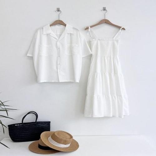 [오노마] ONM 흰색원피스 린넨 반팔 롱셔츠 휴양지원피스 (S10896566)