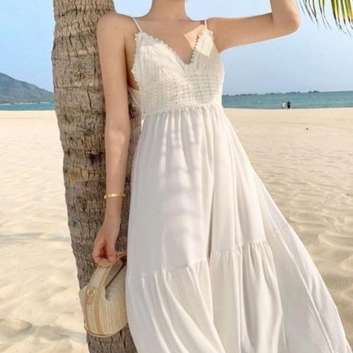 [엄지척]여성 여름 끈나시 롱원피스 화이트 1P 휴가룩_19913048_667501