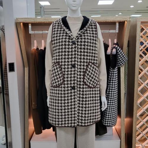 [해리앤]해리앤 DP01 하운드투스 기모 후드 롱 조끼 HOWP6D06 (9260796)