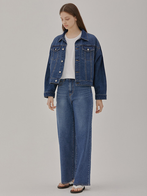[률앤와이] 와이드 스트레이트 하이웨이스트 데님 팬츠 블루