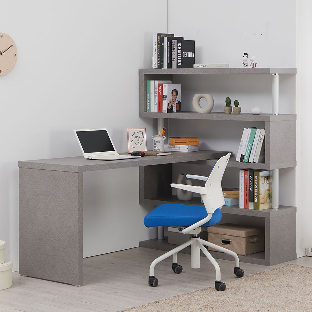 듀오 홈오피스 ㄱ자 컴퓨터 책상 2단 책장 데스크 1200.1400 세트