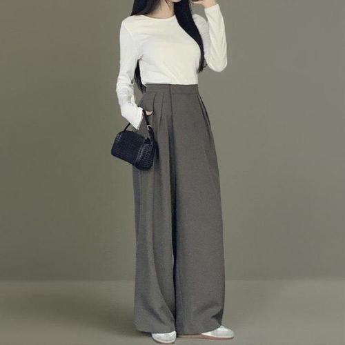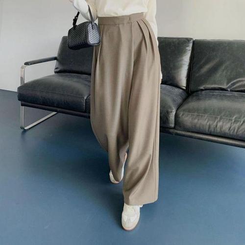 [신상오픈런]여성용 하이웨스트 핀턱 스판 와이드 슬랙스