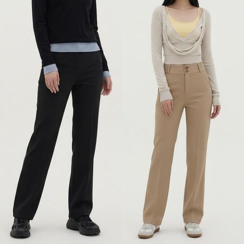 [다잇템]여성 하이웨스트 투버튼 편한 클래식 슬랙스