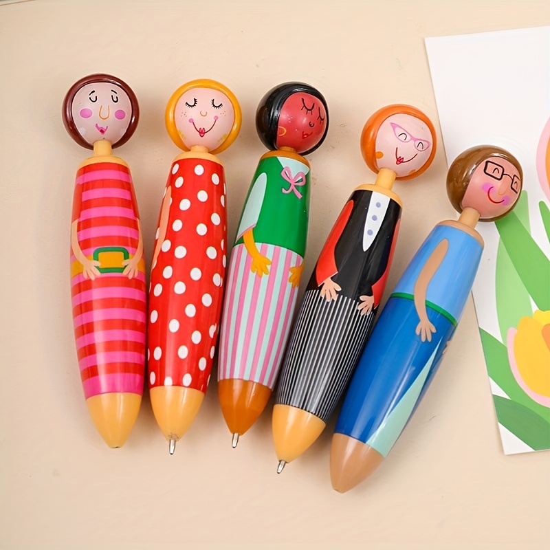 TEMU 5개의 만화 캐릭터가 그려진 리트랙터블 라운드 볼펜, 빠른 건조 잉크, 미세한 팁, 타원형 - 재미있는 사무용품