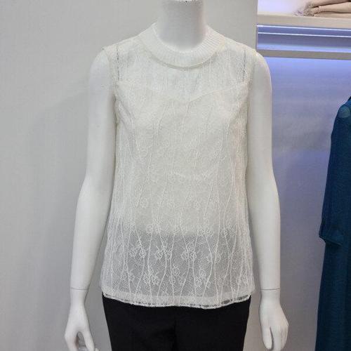 [벨리시앙]벨리시앙 저지 믹스 반하이넥 민소매 블라우스 BL4246