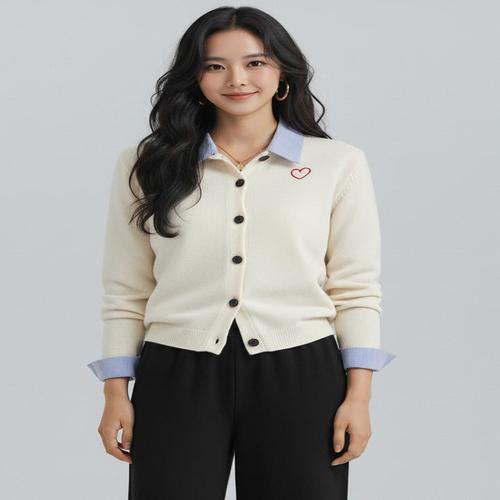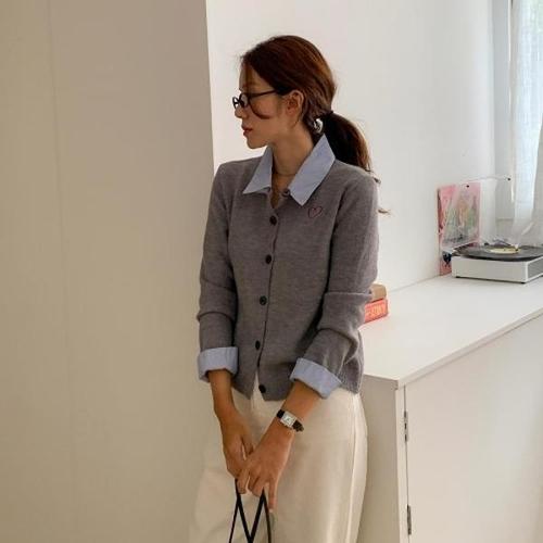 [플로우랩][플로우랩] 하트자수 셔츠배색 가디건_FLCD001F25