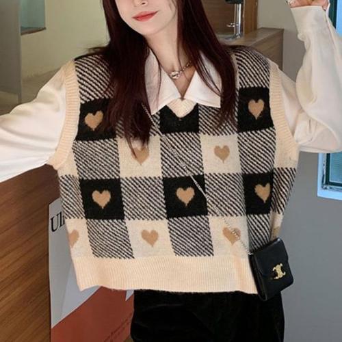 [오너클랜]인기상품 니트 베스트 브이넥 셔츠 코디 체크 배색 하트 패턴 [WE92962_250918]
