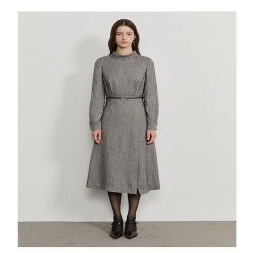 [더아이잗]하프넥 벨트장식 플레어 원피스 IRBA0OP081-JJ