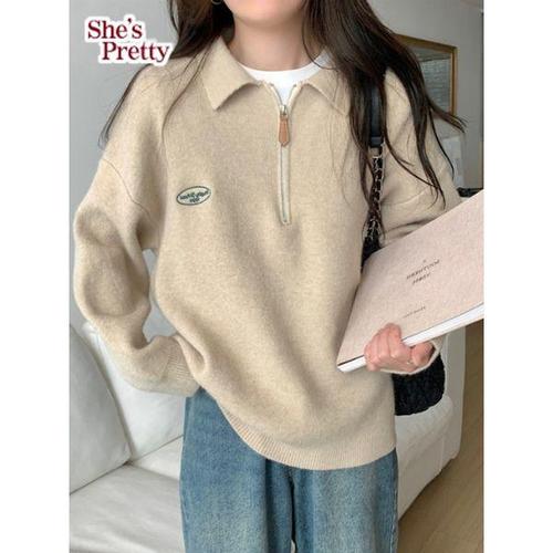[쉬즈프리티]하티집업카라니트_여성니트
