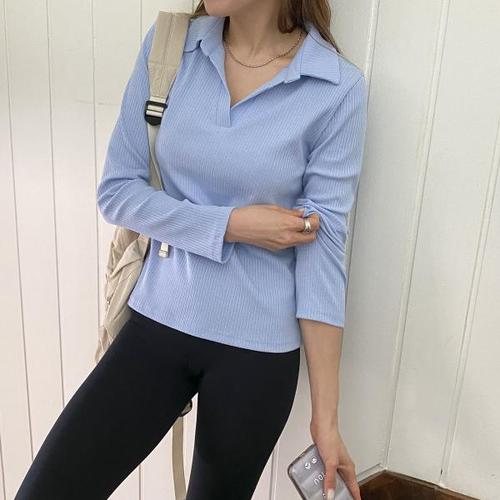 [리엘라]하티푸 브이넥 카라 골지 긴팔티