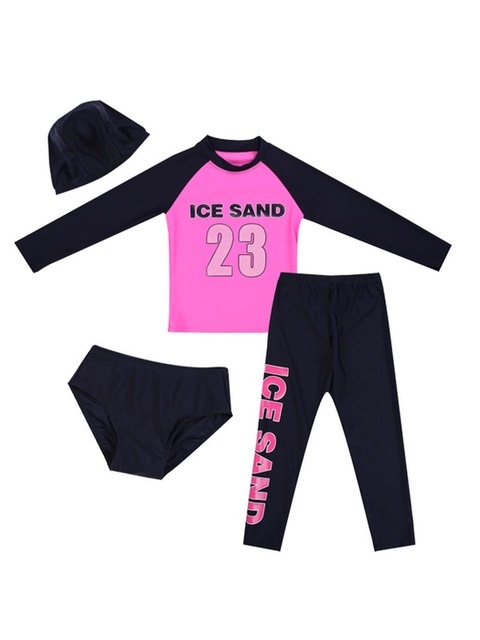 아이스샌드 주니어 아동 여아 래쉬가드 세트+플랩캡 4피스 초등학생 수영복 BR88103