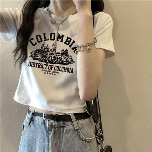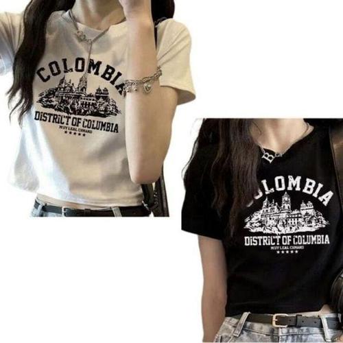 학생 흰티 반팔 좋은 프린팅 여성 품질 CROP (3yGnv)