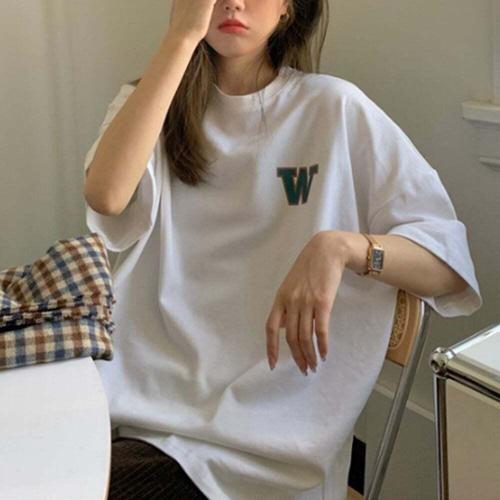 [셀럽하우스]여성 YNZH0660 흰색 로고 반팔티 여름 루즈핏 학생 20대 스트릿