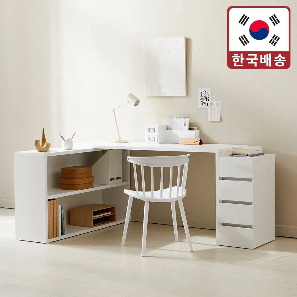 스노우 와이드 데스크 L자형 학생 화이트 책상 1400/1600