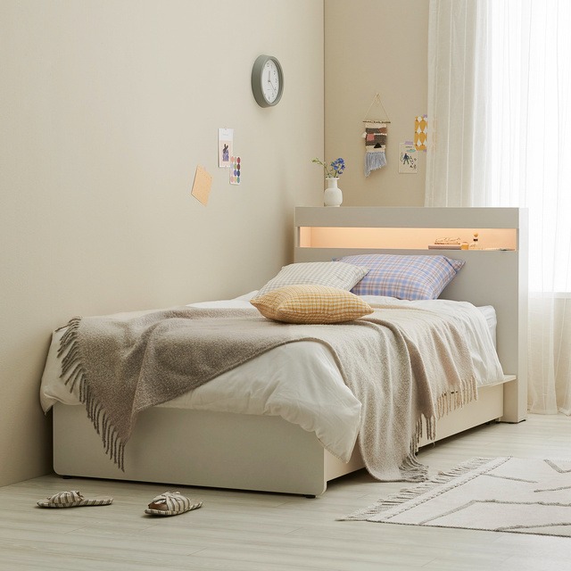 NEW 스마트메이트 편백 LED 수납침대(SS)+독립 자카드 매트리스