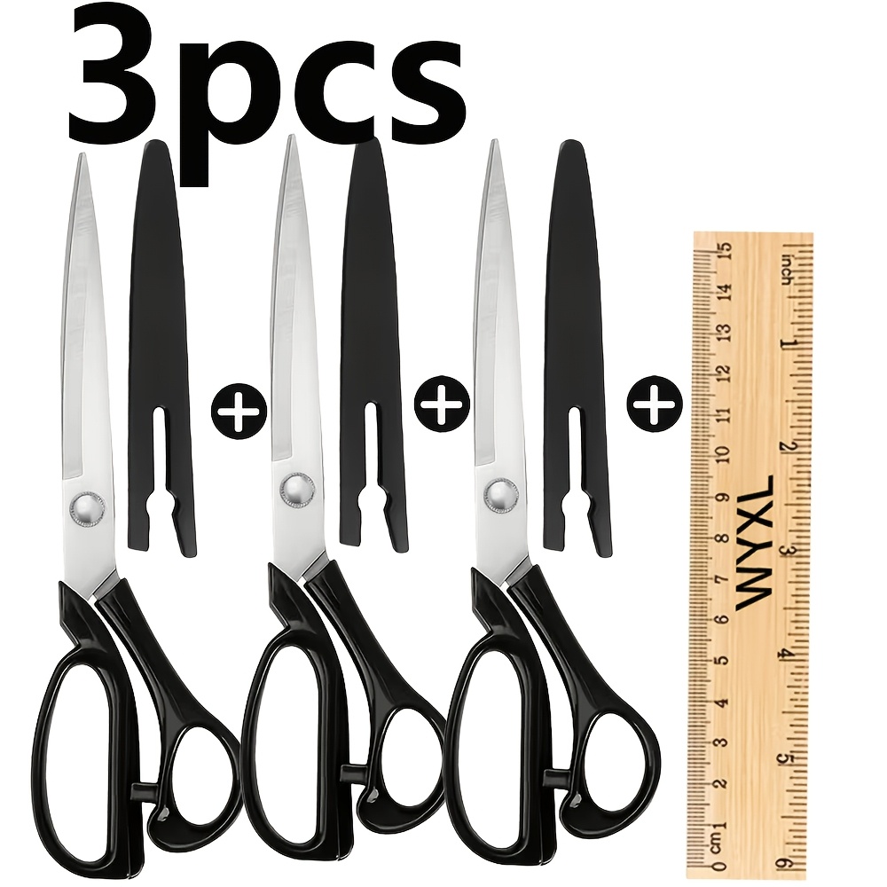 TEMU 3개 세트 10인치 고급 재단가위, 스테인리스 스틸 재봉가위 | 전문가용 패브릭 가위, 재단, 풀랭스, 재단가위, 패브릭 커팅, 인체공학적 디자인, 정밀 커팅, 고하중 가위, 전문가급 가위, 견고한 구조, 재봉가위, 공예용 가위, 가정용 재봉, 패션 및 카드지 측정용