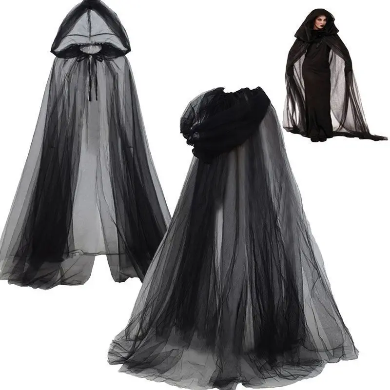 블랙 신부 숄 마녀 뱀파이어 코스프레 망토 할로윈 더블 망토 게임 파티 의상 소품 휴일 드레스업