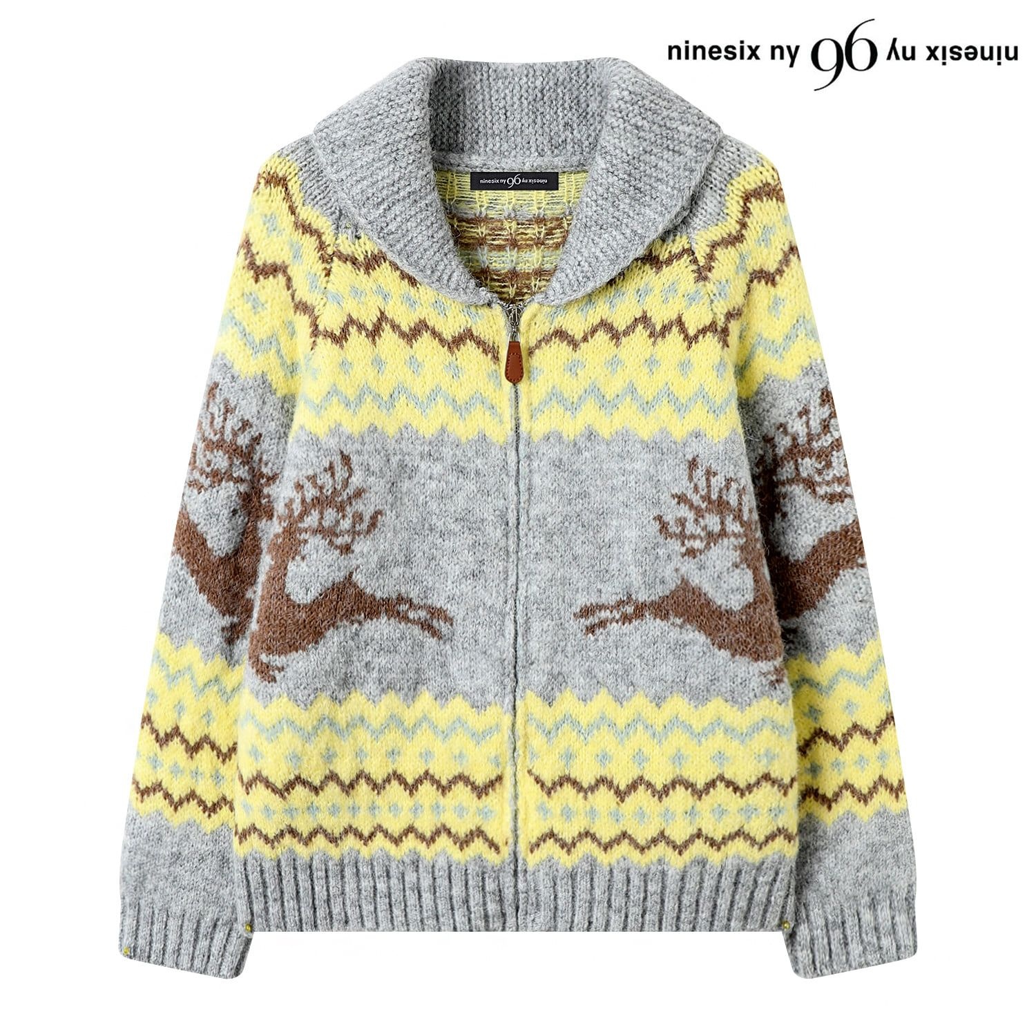 노르딕 패턴 후드 카라 니트 집업 가디건 (NP4CK031L0)