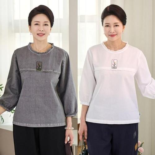 [로즈맘]미호꽃자수면블라우스/할머니블라우스 중년여성블라우스 중년여성의류 5060