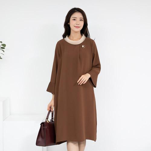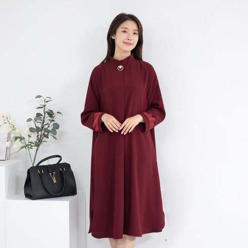 엄마옷 브로치플리츠 긴팔원피스 OP208161 중년여성의류/60대/70대/마담/빅사이즈/할머니옷