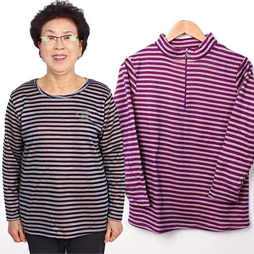 [셀럽하우스]스트라이프 MPPA1328 엄마 티셔츠 할머니 라운드 기모티