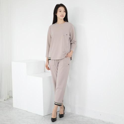 엄마옷 라운드 밴드배색 티셔츠 바지세트 613BNM583 중년여성/50대/60대/마담/빅사이즈/할머니옷