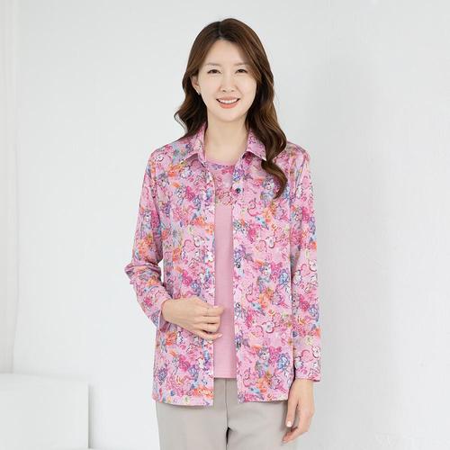 엄마옷 둥근카라 면 나염 자켓 613BNM358 중년여성/50대/60대/마담/빅사이즈/할머니옷