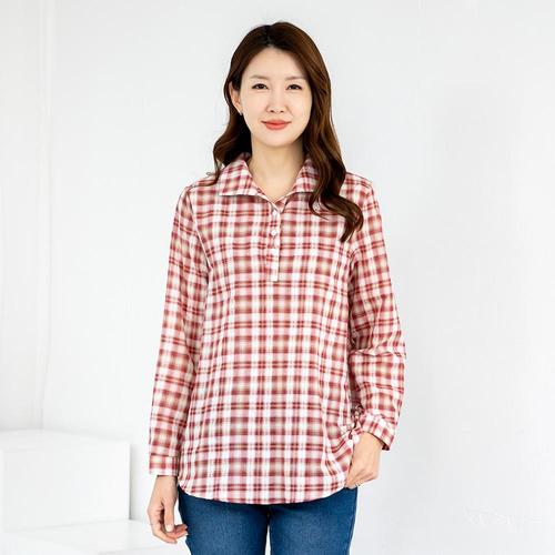 엄마옷 남방 체크 반오픈 긴팔 면 603BNM046 중년여성/50대/60대/마담/빅사이즈/할머니옷