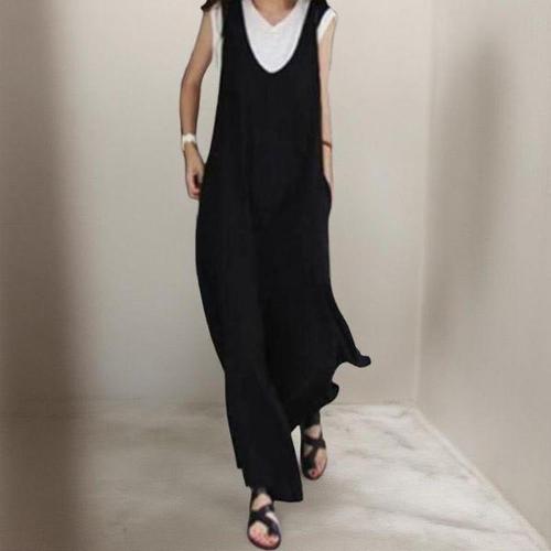 [신상오픈런]여성용 캐주얼 와이드핏 점프수트 딥 브이넥 뒷지퍼 디자인