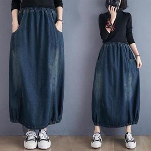 [엄지척]F0583 밴딩 빈티지 항아리 데님 롱 청 스커트_19956425_667501