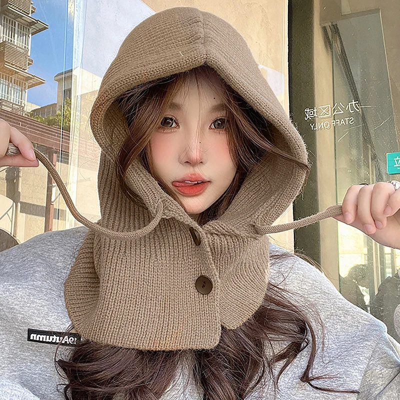 패션 니트 울 후드 웨어러블 담요 여성용 칼라 세트 따뜻한 야구 모자 단색 원피스 풀오버 모자