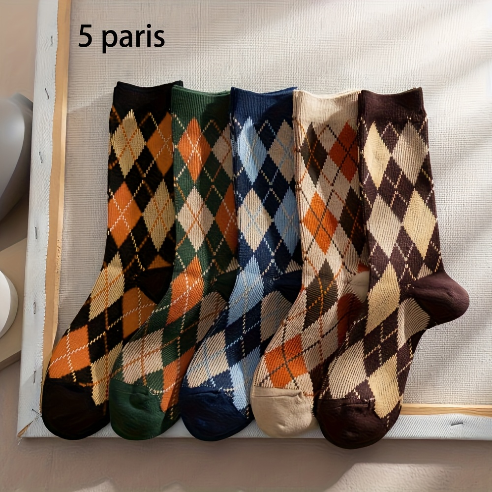 TEMU 5 쌍 여성용 따뜻한 프린트 미드 캘프 양말 - 부드럽고, 레트로 지니엄 패턴, 가을과 겨울 휴일 선물에 완벽, 휴일 선물 양말 | 레트로 지니엄 패턴 양말 | 건설, 여성용 양말
