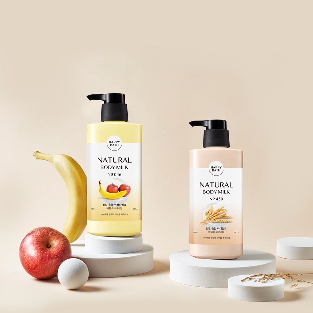 해피바스 네츄럴 정말 순한 바디 밀크 로션 보습제 베이비 파우더향 400g 2개