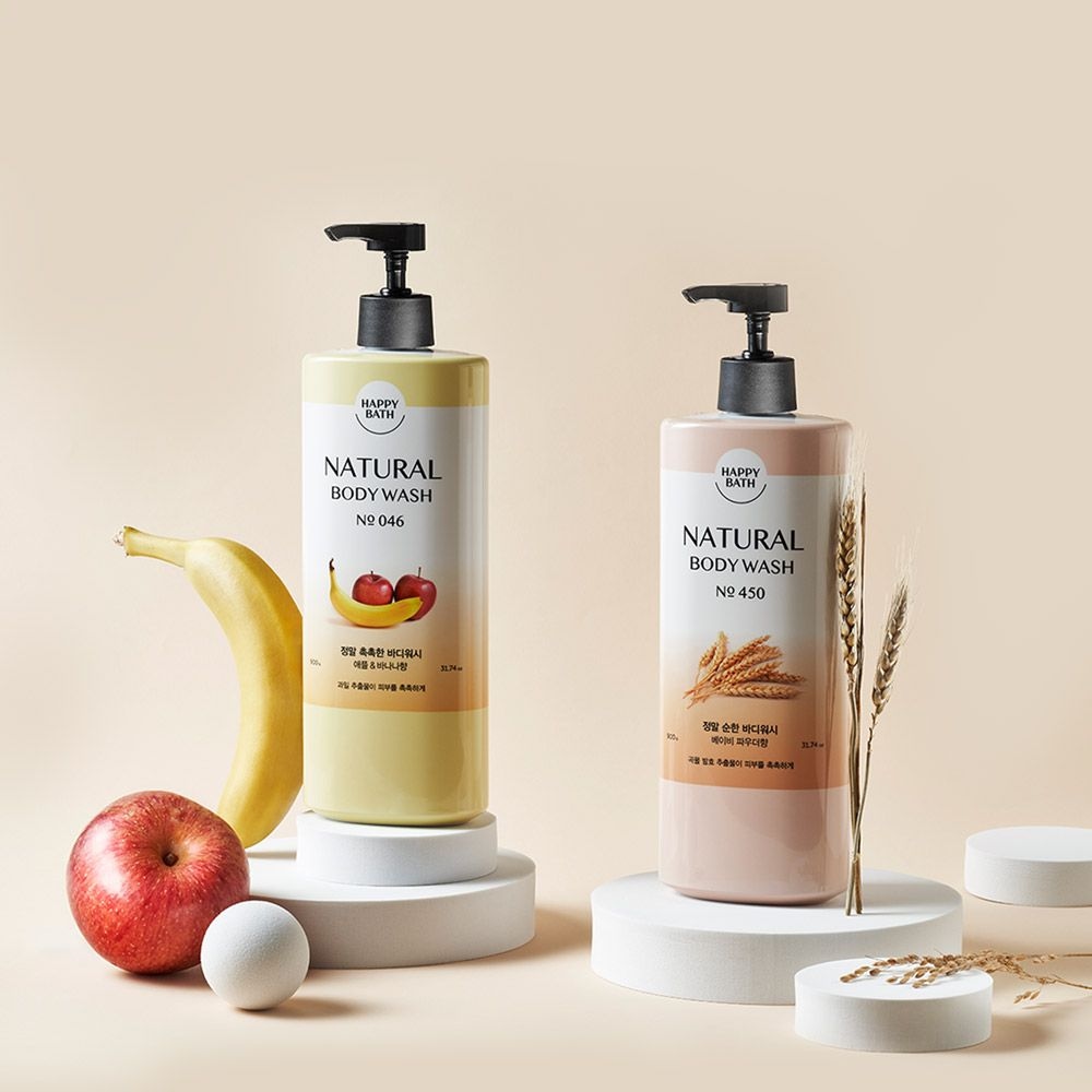 해피바스 내추럴 순한 촉촉한 바디워시 약산성PH 곡물 추출물, 900g, 1개