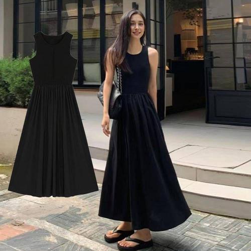 TBZ 민소매 여성 햅번 롱원피스 올블랙 여름 휴가룩 데일리룩 WFNLLTH