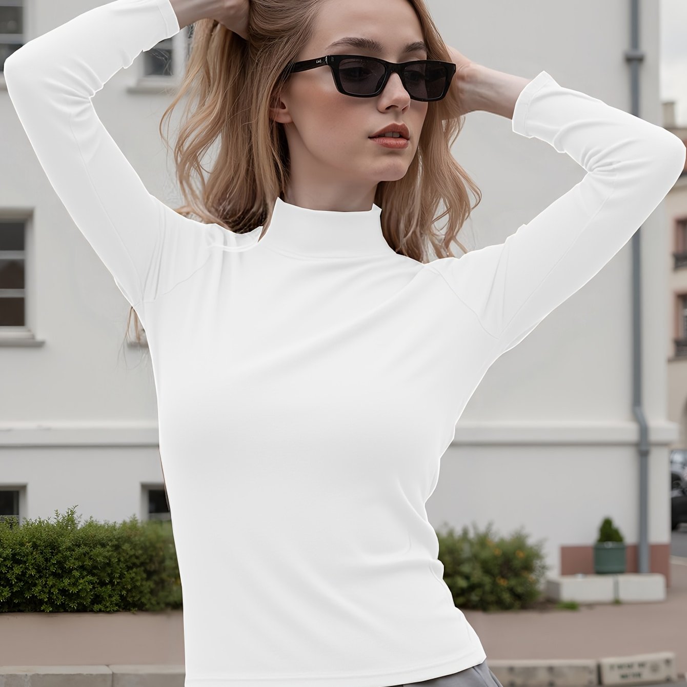 TEMU 여성용 가을/겨울 하프터틀넥 슬림핏 패션 캐주얼 티셔츠 탑
