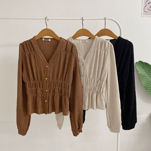 허니제이 / 델리나 브이넥 셔링 주름 골드버튼 블라우스(3color)