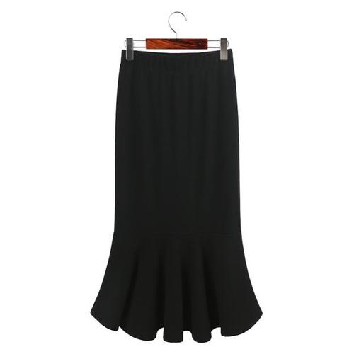 TEMU 솔리드 컬러, 드레이프 디테일, 러플 머메이드 밑단이 특징인 우아한 하이웨이스트 폴리에스터 미디 스커트 - 봄/가을 옷감