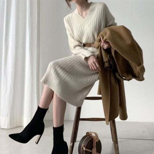 [모노무드]모노무드 JRKU-2910 여성 허리 벨트 포인트 밑단 트임 긴팔 원피스 휴양지