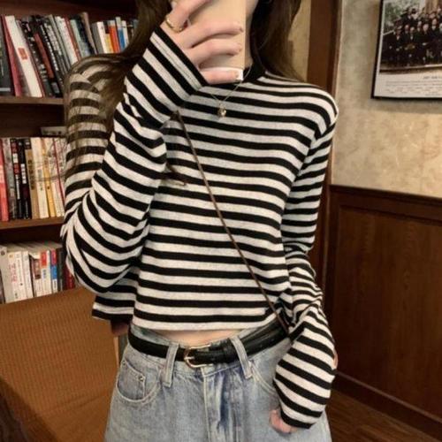 [셀러허브_여성트랜드패션]여자 2컬러 스트라이프 올데이 심플 티셔츠 라운드넥