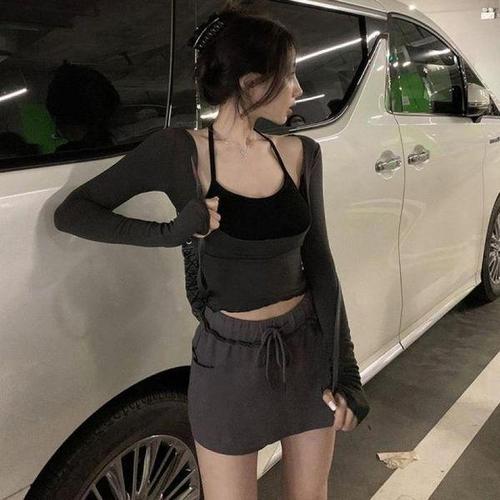 [셀러허브_여성트랜드패션]여성 긴팔 라운드티숙 XL 사이즈 꾸안꾸 단체 나시 크롭티 오버핏 세트 온리고..