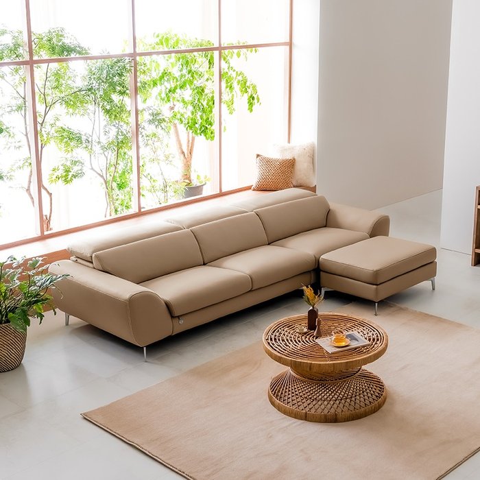 봄소와 도란 4인용 천연 슈타크 통가죽 소파 + 스툴